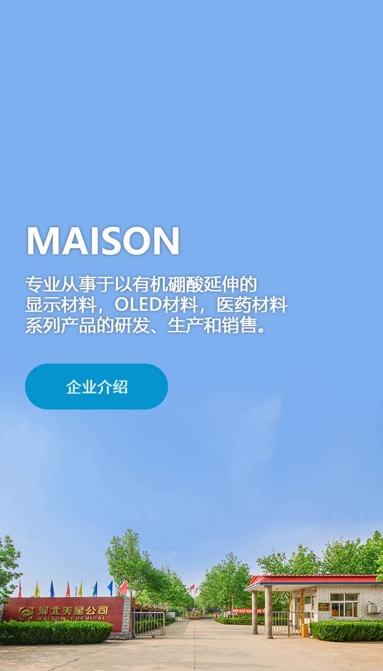 成立于2006年5月,專業(yè)從事有機硼酸、醫(yī)藥中間體、OLED中間體及液晶材料研發(fā)、生產(chǎn)、銷售的中外合資的高科技企業(yè)。產(chǎn)品廣泛應用于醫(yī)藥、半導體顯示材料等領域。